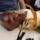 Mein Flapsteak kam tranchiert und sehr puristisch auf einem weißen, eckigem Teller an den Tisch. Das Fleisch von beiden Seiten schön angebraten und gewürzt, der Gargrad optimal getroffen, medium rare, zart und saftig. Dazu noch etwas Kräuterbutter, etwas Gemüse und einer Malerei aus Balsamico. Der Balsamico aber mit gutem Geschmack und passend zum Fleisch. Die Steak House Fries von der dickeren, also passenden Art wurden in einem seperaten Schälchen serviert. Außen kross, innen noch weich, ausreichend gesalzen und nicht fettig. Einen Tick krosser häte mich aber auch icht gestört. Auch die Chili Ananas Salsa würde ich jederzeit wieder bestellen, die Schärfe der Chili harmonierte gut mit der Süße der Ananas und damit zum Steak, Scoville Extremsportler haben aber sicher andere Ansprüche. Diese Kombi würde ich jederzeit wieder bestellen wenn es nicht noch soviele andere Gerichte zu probieren gäbe, 4****.