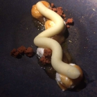 Im nächsten Gang treffen aufgeschäumte Milch auf lauwarme wilde Feigen, die zunächst separat gereicht werden. Für Textur und Geschmack sorgt aufgepoppter Reis. Angegossen eine leicht nussig schmeckende Sauce mit Anchovis. Klingt schräg, ist es aber nicht. Die Anchovis sollen nur eine leichte salzige Note beisteuern und sind als solche nicht herauszuschmecken. Das Getränk dazu ist ein Portwein mit Sake, Kirschessig und Soda. Passt ebenfalls gut, ist aber mit der deutlich spitzen Säure des Essigs ein markanter Kontrast zum eher milden Gericht, wobei aber die fruchtigen Noten des Cocktails gut passen.