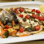 • Dorade, entgrätet nach Art des Hauses, mit Gemüse und Salatbeilage (23,50 €)