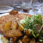 Meine Frau bestellte "Schweineschnitzel Wiener Art mit Kartoffelspalten und Salatbouquet", ich hatte "Cordon Bleu vom Schwein mit geheimer Hausfüllung, Kartoffelspalten und Salatbouquet" und die Gastgeber oderten das Spezialgericht des Tages, "Wildschweinkoteletts mit Kartoffelspalten und Salatbouquet". Nichts sagen kann ich zu den Preisen; wie bereits erwähnt waren wir eingeladen und ich habe die Rechnung nicht gesehen. Ich meine aber, dass das Cordon Bleu so etwas über EUR 19 kostet.