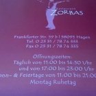Bei GG war das Restaurant Zorbas noch nicht gelistet, was ich aber erst bemerkte, als ich die heutige Rezi über unsere Einkehr im Zorbas hier einstellen wollte, und so habe ich die Location erstmal bei GG angemeldet. Deshalb liegt auch kein Foto von mir vor, das den Eingang zeigt. Auf den Fensterscheiben klebten noch die Neueröffnung-Folien.