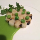 Zarter Lammrücken optimal durchgängig medium rare gegart. Außen rundum kräftige Röstaromen. Drum herum flankiert von karamellisiertem Chicorée und einem ausgebackenen Erbsenstäbchen. Eine mit dem indischen Gewürz Vadouvan verfeinerte, aromenstarke dunkle Sauce vollendete dieses feine Gericht.