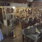 Drinnen war ich auch mal. Der Gastraum welcher etwas um die Ecke liegt ist zugehängt mit Küchenutensilien und dergleichen. Ja es hat vor Allem durch das Sichtmauerwerk (oder Blende?) etwas. Aber es wirkt sehr unruhig. Der Pfannen-, Knoblauchzöpfe- und Devotionalienoverkill ist auf den ersten und auch den zweiten Blick recht verstörend. Grundsätzlich nett eingerichtet gibt es drinnen einfach auch ein Zuviel.