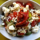 Alles wird gleichzeitig serviert und los geht die Schlemmerei. Alles ist hübsch angerichtet und der Bauernsalat hebt sich von den üblichen Varianten ab. Kapern und mehr als "eine" Olive sowie ein gekrümelter Feta sind nicht nur optische Finessen - der Salat schmeckt hervorragend. Der gebackene Käse mit der Tomatenmarmelade hat mich ebenfalls begeistert. Die gebackenen Auberginen und Zuccini kommen kross in einem Körbchen mit einem Klecks Zaziki daher. Alle Vorspeisen sind tadellos und munden uns sehr. Doch noch verspüren wir einen Resthunger und bestellen in der zweiten Runde Gegrilltes in Form von Lammkotlett, Souvlaki, Kartoffel und Zaziki. Das Fleisch kann separat in entsprechender Stückzahl bestellt werden. Die Karte hat auch kleinere Kombinationen, aber der Klassisch-Deutsch-Griechische Teller vollgehäuft mit Beilage, Salat, verschiedenen Fleischsorten gibt es nicht. Und das ist gut so.