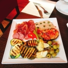Die Antipasti setzten sich zusammen aus gegrillten Auberginen- und Zucchinischeiben, eingelegten grünen Oliven, Artischocken, Paprikastreifen, Vitello tonnato, Bruschetta und reichlich Schinken und Salamischeiben. Alles gut essbar und großzügig portioniert.
