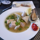 Wieder sehr empfehlenswert die Fischsuppe für preisgleiche 7,90 € mit viel guter Einlage in einem guten Fischfond. Zwei gebratene Garnelen für 6 € auf gut gewürztem Öl wussten auch zu gefallen. Erst recht dann meine sehr fleischige Scholle mit Bratkartoffeln und vielen kleinen Speckwürfelchen für 22,90 €. Meine Begleiterin bekam ein gut paniertes und ausgebackenes Stück Seelachs mit rustikalen Pommes für 18,90 € (+ 2 €). Mit vier Speisen und acht Getränken blieben wir bei knapp 93 € stehen, was ich vom Preis-Leistungsverhältnis her auch im Quervergleich 2022 gleichbleibend mit 4,5 Sternen goutieren möchte.