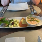 Sehr sparsam in der Wiederholung zwei Scheiben Allerweltsbaguette mit einer süßlichen Majo als Küchengruß.