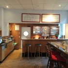 Der in L-förmigem Grundriss geschnittene Ort der Speisung war geschmackvoll eingerichtet. Zwei alte, wieder in Schuss gebrachte Werkbänke fielen uns sofort ins Auge. Mit etwas erhöhten Barstühlen ausgestattet, wurden auch sie als zünftige Tafeln für die Verköstigung genutzt. Das Rätsel um den Namen des Restaurants war damit gelöst. Aber auch sonst dominierte hölzerne Rustikalität bei der Einrichtung.