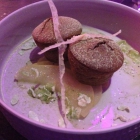 Diese Suppe ist der Eye-Catcher! Eine giftgrüne Farbe hergestellt aus Thai-Basilikum, ein Duft von exotischen Gewürzen steigt in die Nase. Aus kräftigem Fond, Kokosmilch und Gewürzen hat der Koch ein Highlight der Geschmacksexplosionen gezaubert. Auch die festen Bestandteile wie Streifen von Geflügel, von Champignons und kleine Stücke von Cherrytomaten waren nicht zu verachten. Insgesamt eine Aromenexplosion die zum „Wiederholungstäter“ werden lässt.