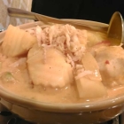 Mit knusprigen Reisteigtaschen, gebratenen Fischfrikadellen, Saté-Spießen, frittierten Krabben und Frühlingsröllchen stehen zudem eine Reihe von asiatischen Snacks auf der Karte, die schon Keeshond auf seiner Laai-Kanok-Vorspeisenplatte (15,90 Euro für zwei Leute) versammelt hatte und die es natürlich auch einzeln zu bestellen gab. Bei Preisen zwischen 4 und 6 Euro lässt sich da gut kreuz und quer bestellen. Meinem Wunsch nach der Zwei-Personen-Platte stand der nicht ganz so stark ausgeprägte Hunger meiner Begleitung entgegen, weshalb ich mich kurzum für die frittierten Krabben mit Kokosraspeln und süß-saurer Soße (5,50 Euro) sowie die Tom-Yam-Suppe mit Garnelen (ebenfalls 5,50 Euro) entschied.