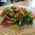 Als Hauptgang ging dann neben dem Seelachs von der Empfehlungskarte noch das nach alter friesischer Rezeptur kredenzte Störtebekermatjesfilet (11,40 Euro), das mit Roter Beete, einer ordentlichen Portion Sahnemeerrettich und knusprig-salzigen Bratkartoffeln serviert wurde. Als bekennender Matjes-Verschmäher habe ich nur die „Gebreedelde“ probiert, deren Geschmack schlichtweg sensationell war. Da könnten sich einige Weinstuben in der Pfalz ein paar hauchdünne, vorgekochte Kartoffelscheibchen von abschneiden. Mein Seelachsfilet wurde anscheinend gut gepfeffert und gesalzen, bevor es mehliert und dann in der Pfanne gebraten wurde. Das war insgesamt ein stimmiges Fischgericht. Die Bärlauchsoße hatte genug Substanz und Würze, um die begleitenden Bandnudeln geschmacklich aufzuwerten. Der Beilagensalat kam vorweg und war mit Himbeeressig angemacht. Auch der war unserer Meinung nach richtig lecker. Schade nur, dass das dazu gereichte Brot seinen großen Frischeauftritt schon hinter sich hatte. Da bin ich von Restaurants der gleichen Liga eben Besseres gewohnt.