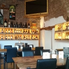 Das Ambiente gefällt uns ausgesprochen gut. Zur umgebauten Scheune passt das rustikale Mobiliar. Die Beleuchtung ist sehr angenehm. In Wandboards sind viele Weine ausgestellt. Diese werden über den PUUR-Weinhandel zu fairen Preisen verkauft, für den Genuss zu Hause.