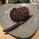 Der Gargrad war perfekt getroffen! Beim letzten Besuch hatte ich ja das Carree vom Duroc-Schwein bestellt und war nun sehr gespannt auf die eigen gereiften Rindfleischstücke. Etwas Salz und Pfeffer on top und ich kostete. Lecker! Perfekt zartes und gereiftes Rindfleisch, mit einer ausgeprägten Marmorierung und entsprechend saftig! Dieses Steak konnte den aufgerufenen Preis absolut rechtfertigen. Und auch meine Befürchtung, dass meine Frau den etwas überdimensionierten Ladiescut nicht schaffen würde, war unbegründet, das gute Stück Rindfleisch wurde restlos verzehrt.