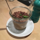 Zu Beginn für meine Frau Lachs-Tatar, in der Karte beschrieben mit "Ein charakterstarkes Tatar mit frischem Sashimi-Lachs, Crème fraîche, Zitrone und hauchdünnen Radieschenscheiben". Radieschen gab es nicht, dafür ausdrucksstarke japanische inspirierte Aromen. Der Lachs war offensichtlich mit einer Teriyaki angemacht, gut abgeschmeckt. Teriyaki spielte auch eine große Rolle in den Saucenklecksen auf dem Teller, zusammen mit Sesam. Sehr guter Teller, ich hoffte, meine Order würde mithalten können.