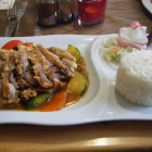 Ambiente: Fällt für mich unter den Begriff "altdeutsch", ergänzt um einige wenige Asia-Devotionalien. Die violetten Läufer auf dem Parkett passen da wie die Faust aufs Auge. Raus mit dem Scheiss und den schönen alten Holzboden etwas überholt oder abgeschliffen würde die Räumlichkeiten schon ziemlich aufwerten. Nicht sehr bequem sind die Bänke; auch hier könnte durch Aufpolsterung etwas zur Bequemlichkeit des Gastes beigetragen werden, aber vielleicht will der neue Pächter vor grösseren Investitionen in die Einrichtung erst einmal abwarten ob sich der Laden überhaupt einigermassen trägt. Ebenso wenig wie die violetten Läufer hat mir die doch recht laute Musikberieselung gefallen. Selbst für den Fall dass es Perlen der asiatischen Sangeskunst gewesen sein sollten: Hintergrundmusik sollte wirklich nur im Hintergrund leise vor sich hinrieseln und nicht die Ohren des Gastes über Gebühr strapazieren. Für das Ambiente kann es aus meiner Sicht insgesamt nicht mehr als drei Sterne geben; für die zu laute Musik ziehe ich davon noch einen halben ab.
