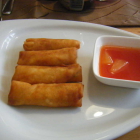 Wir haben das "Angebot der Woche" bestellt und dazu Bitburger vom Fass (es gab kein anderes; EUR 2,50 für 0,3l) und Lycheesaftschorle (0,4l EUR 3,50) getrunken. Besagtes Angebot der Woche für EUR 9,50 bestand aus vier Mini-Frühlingsrollen mit Gemüsefüllung als Vorspeise und Hauptgericht war "Knusprige Ente mit Gemüse und Reis".