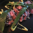 Dieser Gang war für mich deutlich der beste vom ganzen Menü. Jede der drei Schalen war köstlich. Der Thunfisch mit Gewürzen und einer umhüllenden Marinade war frisch und anregend. Der Wolfsbarsch war in Säure und Öl eingelegt und wurde von Koriander, Knuspermais und feinen Gemüsewürfeln (Rote Bete) perfekt begleitet. Auch der rohe Thunfisch und die Scheiben von der Jakobsmuschel wurden ausgezeichnet von aromatischem Obst wie Mango und Apfel oder Sojasprossen abgerundet.