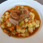 die gesondert in einem Schälchen, sehr heiß und in einer leichten hellen Sauce serviert wurden.