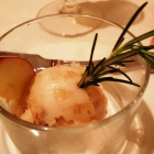 Zum Geschmack: Die Jakobsmuscheln sehr gut gebraten, schön aromatisch die Beete. Im Eingangsbereich lag der aufgeschlagene „Feinschmecker“ mit dem Trüffelthema. Leider ließ sich das Trüffelaroma bei dieser Vorspeise nur schwer finden. Das Kürbis-Risotto, wohl lange vorbereitet, daher eher ein Pürree. Keine schlechte, aber eine verbesserungswürdige Vorspeise.