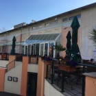Nachdem wir wieder neue Lebenslust verspüren, verspüren wir auch Hunger. Wir suchen das gastronomische Angebot direkt in der Therme auf. Diesen erreicht man vom Eingangsbereich aus, oder von außen über Stufen über den schön gelegenem Terrassenbereich mit Blick über den Kurpark. Drinnen ist das Platzangebot weniger groß. Auffällig ist hier das Schachbrettmuster auf dem Boden. Die Bestuhlung ist in dunkel gehalten, die runden oder eckigen kleinen Tische sind blank und haben eine Marmoroptik. Auf jedem Tisch steht ein Blumentopf, alles ist sauber und ordentlich. Die Theke ist bestückt mit zahlreichen leckeren Konditortorten.