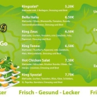 Immer frische Salate mit wunderbaren verschiedenen Dressings. Die Suppen sind auch einfach ausgezeichnet. Jede einfach sehr lecker. Sehr nette Bedienung und absolute Kundenfreundlichkeit. Könnte mein zweites Zuhause werden. Absolut Spitze.