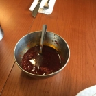 Die Chilisoße zum nachwürzen hatte schon eine ordentliche schärfe und war nicht die übliche aus dem Glas wie man sie oft bekommt. Sie war etwas ölig , aber lecker zu den beiden Gerichten.