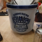 An den Wänden Bilder aus der Geschichte der Brauerei, dazu etliche Pokale auf vielen Regalen. Auf jedem Tisch ein Steinzeug Krug, worin das Besteck für den Tisch stand. Zusätzlich ein Senf Napf, Salz-und Pfefferstreuer.