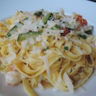 Nach der gelungenen Vorspeise kamen recht zeitnah unsere Pasta-Teller. Schön fand ich, dass die Servicedame beim Wegtragen der geputzten Antipasti-Platte bei uns nachfragte, ob es denn mit den Hauptgerichten weitergehen könne. Das wird auch nicht in jedem Lokal so praktiziert. Meine Fettucine mit Garnelen sahen ansprechend aus und dufteten angenehm mediterran. Die Nudeln waren vielleicht einen Tick zu weich geraten. Schade, denn die hier benutzten Pasta-Preziosen stammen allesamt aus dem Traditionshaus „Rummo“, einer über 150 Jahre alten italienischen Manufaktur, die durch besonders schonende Zubereitung außerordentlich hochwertige Pasta herstellt. Das fehlende „Al-Dente-Erlebnis“ konnte jedoch den aus frischen Zutaten bestehenden Sugo aus Zucchini, Tomaten und Garnelen geschmacklich nicht schmälern. Frische, die man schmeckte – um es auf einen kurzen Nenner zu bringen.