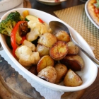 Meine Schwägerin hatte sich das gegrillte Schweinefilet in Gorgonzolasoße mit frischen Champignons und Kartoffeln mit Gemüse als Beilage ausgewählt (17,50 €). Die gebratenen Kartoffeln und das Gemüse (Blumenkohl, Broccoli und Zucchini überwiegten) wurden reichlich in einer Form separat gereicht, sahen appetitlich aus und hatten berichtet noch gut Biss. Mit den beiden in Steakform geschnittenen Scheiben vom Schweinefilet eine sehr großzügige Portion. Meine Verkostung ergab eine ordentliche Sahnesoße mit leichtem Käsegeschmack. Die charakteristischen Schimmelnester, die für den Gorgonzolanachweis stehen, konnte ich nicht ausmachen.