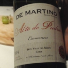 Alto de Piedras Carmenère von de Martino ist ein Einzellagenwein im D.O. Maipo. Das Weingut de Martino hat 1996 angefangen Einzellagen-Weine zu machen, um die besondere Identität und Herkunft der Produkte zu zeigen. Der Wein wird für zwei Jahre im großen Holzfass ausgebaut. Ähnlich wie Ridge in den USA, macht der Konzern das meiste Geld mit einfachen Weinen. Auch sie wollen zeigen, dass Größe keinen Verlust an Qualität zeigen muss.