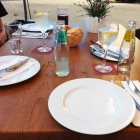 Zügig kamen die Gedecke uns mit ihnen dann auch ein Körbchen mit aufgeschnittenem Baguette. Letzteres war auch ganz ok aber aufgrund der georderten Pita dann doch eher unnötig.