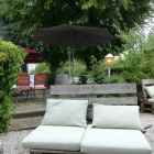 Nachdem wir uns für den Abend aufgehübscht hatten, gingen wir die paar Schritte wieder zum Restaurant. Wir wurden freundlich von einem jungen Mitarbeiter begrüßt und durften wählen: Draußen oder drinnen? Wunderschönes Wetter, also blieben wir in dem schön gestalteten Außenbereich mit altem Baumbestand.