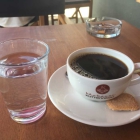 Zum Kaffee gab es ein Glas Wasser dazu und einen leckeren selbstgemachten Keks in Herzform.