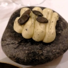 Geräucherte Crème Fraiche unterstützte die vollmundige, auf der Zunge schmelzende Fischspezialität stimmig. Saiblingskaviar und mit Kresse-Öl verfeinerte Molke brachten süffig-salzige Frische ins Spiel.