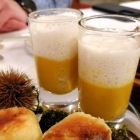 Weiter ging der bunte Amuse-Reigen mit einem Kürbissüppchen mit Kokos-Curry-Schaum (als Shot serviert)