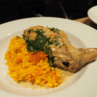 Der 3. Gang, unser Hauptgericht, war ein sehr fettarmes und zart geschmortes Kaninchen in Weißweinsauce, mit einem leicht süßlichen Geschmack auf Kürbis-Orsotto. Wie wir erfahren haben, gehören Perlgraupen als Beilage zu einem Kaninchen-Gericht in Russland einfach dazu. Also ist ein Orsotto (was wir vorher noch nie gehört hatten) ein Risotto mit Graupen. Und schon haben wir wieder etwas dazugelernt.