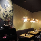 Zu den vietnamesischen Sommerrollen wurde eine Sauce zum Dippen (vermutlich auf Hoisin-Basis mit etwas Erdnussraspel oben drauf) gereicht. Ein frischer Start, der gut bei uns ankam. Nach deren Lieferung tat sich für längere Zeit nichts. Anscheinend war dies dem großen Andrang geschuldet. Im Restaurant waren zu dieser Zeit fast alle Plätze belegt. Aber für die gute Qualität des Sashimi lohnte sich das Warten allemal. Einfallsreich angerichtet (Lachs- und Thunfischfilet in Blütenform) und mit Gurken, Salatblättern und Rettich garniert, machte der Rohfisch-Teller auch für das Auge was her. Klar, dass wir neben fein gehobeltem, in Reisessig eingelegtem Ingwer (Gari) auch ein paar grüne Kleckse von der scharfen Wasabi-Paste auf dem Teller vorfanden. Zusammen mit der Soja-Sauce ergibt die Meerrettich-Schmiere einen pikant-süßlichen Dip, der unsere Fischhäppchen zu einer noch delikateren Angelegenheit werden ließ.