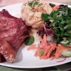 Als nächstes kam die "Kalbsleber mit Portwein-Sauce, Zwiebel, Kartoffelpüree und Blattsalat, dem Vernehmen nach schmackhaft und auch in ausreichender Portion. Leider war diese Begleiterin in Sachen Essen etwas wortkarg, aber ich denke, der fränggische Sads "Bassd scho" hätte durchaus fallen können.