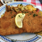 Die Speisekarte ist relativ Schnitzel lästig und einfach. Wir entschieden uns mehrfach für das Wiener Schnitzel (EUR 7,50) mit Bratkartoffeln - sehr große Portion, das Fleisch etwas zu dick -,