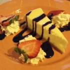 Die Wartezeit ist etwas länger, und leider kommt alles hintereinander an den Tisch. Die Tarte ist in Ordnung, hätte etwas süßer sein dürfen. Mein Cheese Cake ist der absolute Hammer, herrlich locker, einfach suuuuper. Das Gegenteil von gut ist gut gemeint. Wer hatte da den blöden Einfall, großzügig die Pseudoschokosoße quer über den Kuchen zu verteilen? Grrrrr, das stört den Geschmack gewaltig. Der Espresso ist nicht mengenmäßig doppelt, sondern vom Konzentrat her.