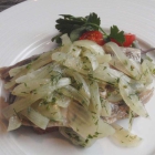 Ich bin kein großer Freund von Matjes; habe aber bei einem Kochkurs in der Karnevalszeit selber den Fisch unter Anleitung eingelegt und einige Stunden reifen lassen. Er schmeckte nicht schlecht, aber es wird wohl nicht meine Lieblingsspeise – genau wie auch Griesbrei – den habe ich sogar schon im Vendome serviert bekommen, ohne meine Einstellung zu ändern. – Ganz anders wie bei einigen Gemüsearten, die ich nach dem Verkosten im Restaurant sofort zu Lieblingszutaten befördert habe: Wirsing, Blumenkohl, Rübstiel oder Staudensellerie (Muttern hat alle Gemüse zu lange gegart und immer mit Mehlschwitze versehen). –