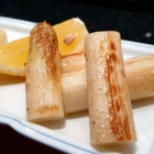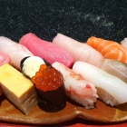 Was sich erfreulicherweise nicht verändert hatte, war Sakamoto-san, der inzwischen über 70 sein müsste, aber natürlich mit Oberhemd und akkurat gebundener Krawatte unter dem schneeweißen Kittel gut gelaunt seiner Arbeit nachging. In der hinteren Küche wurden die warmen Speisen zubereitet. Für den Service standen am Rand stets zwei Damen bereit. Ich fühlte mich etwas beobachtet. Sie waren höflich, aber reserviert, bei Nachfragen freundlich. Meinen Wunsch nach einem heißen Tuch zur Reinigung konnten sie nicht erfüllen. Etwas hilflos wurde mir angeboten, eine Papierserviette durch warmes Leitungswasser zu ziehen…