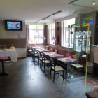 Die Einrichtung der beiden Räume rechts und links vom Eingang des Cafés wirkt nicht unbedingt gemütlich. Man sitzt zwar auf bequemen gepolsterten Stühlen oder Hochlehner-Bänken, aber insgesamt hat man eher den Eindruck, es handele sich hier um ein modernes Bistro.