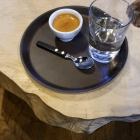 Aufgrund einer ziemlich schlaflosen Nacht und 220km Autobahnkilometern nach Aschaffenburg, brauchte ich dringen einen Koffeinschub. Mein Espresso wurde mit einem Glas Wasser gereicht. Ich lies mich in einem der bequemen dicken Sessel nieder und studierte die Karte und die Teller der übrigen Gäste. Ich war ziemlich beeindruckt. Es sah alles sehr appetitlich aus. Das Pano legt Wert auf regionale Produkte, lässt die Sauerteig-Brotlaibe nach eigenen Rezepten im Holzofen bei den den hiesigen Bäckern backen und die Kuchen und das Eis zum Teil von eigenen Konditoren und Mitarbeitern vor Ort selbst herstellen. Es ist saisonbezogen und bietet auch Speisen für Veganer an.