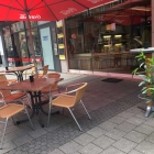 Am Eingang gibt es eine Schwelle, Toiletten liegen ebenerdig und parken ist hier ein paar Schritte entfernt möglich im Parkhaus Sternentor. Was wir sehen konnten war alles sauber. Getränke gibt es hier alkoholfreie. Die Dame war sehr nett und freundlich. Wir wurden begrüßt und verabschiedet. Sie wünschte uns einen guten Appetit und bedankte sich das wir die Teller zurück gebracht hatten. Die Tische haben hier eine Marmorplatte und dazu gibt es Art Rattanstühle im Bistro Style. Es stehen auch Aschenbecher auf den Tischen. Beschattet wird hier durch rote Sonnenschirme.