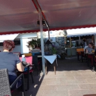 Sie war mit einer großen Markise komplett beschirmt. Eine halbhohe Glaswand schirmte zur Straße und gegen den an diesem Abend nicht vorhandenen Wind ab.