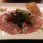 Als Vorspeisen wählten wir die Tomatensuppe mit frischen Kräutern der Provence, Schmand und Pfeffer-Pesto ( € 4,90 ) und das Rindercarppaccio auf einer würzigen Marinade mit frischen Himbeeren, Pecorino, Rucola ( € 11,90 ), zur Hauptspeise durften es die Bärlauchpasta mit Rumpsteak ( Bärlauchnudeln mit Tomatensugo, gegrillten Rumpsteakstreifen, Pecorino und Rucola / € 16,60 ) und das Lammfilet gewürzt mit frischem Knoblauch und afrikanischem Pfeffer, auf mediterranem Gemüse an Mango-Würfeln ( € 26,90 laut Karte / € 24,50 auf der Rechnung ) und Pommes als Beilage sein.