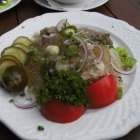 Ganz anders das Sauerfleisch, es war hervorragend gemacht mit Pfeffer, Piment und Lorbeer und dann noch mit Zwiebelringen und Lauchzwiebelröllchen bestreut. Der Geschmack war wirklich sehr gut, ich habe lange nichts Vergleichbares gegessen.