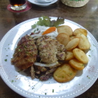 Alle drei Fleischkomponenten waren gut, aber unterschiedlich gewürzt, das Fleisch war qualitativ gut und zart. Die gerösteten Kartoffelscheiben konnten etwas Salz vertragen, waren aber von der Konsistenz in Ordnung. Auch das Tzatziki konnte überzeugen, der Knoblauchgehalt war nicht übermäßig, dafür war es schön cremig.