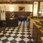 Im Frühjahr 2016 wurde das Wirtshaus in einer ehemaligen Hauskapelle der alten Patrizierburg eröffnet. Im Inneren erinnern noch einige Elemente an alte Zeiten. Das rustikale Deckengebälk und die dunklen Holzvertäfelungen machen etwas her. Mittelpunkt des vorderen Teils des Lokals ist die große Theke - mehr schon Bar - mit seinem riesigen Spiegel. Die Tische und Stühle im Bistro-Stil tun ein Übriges, um sich hier wohl zu finden. Der Hauptfaktor war allerdings die wohlige Wärme, die uns empfing.